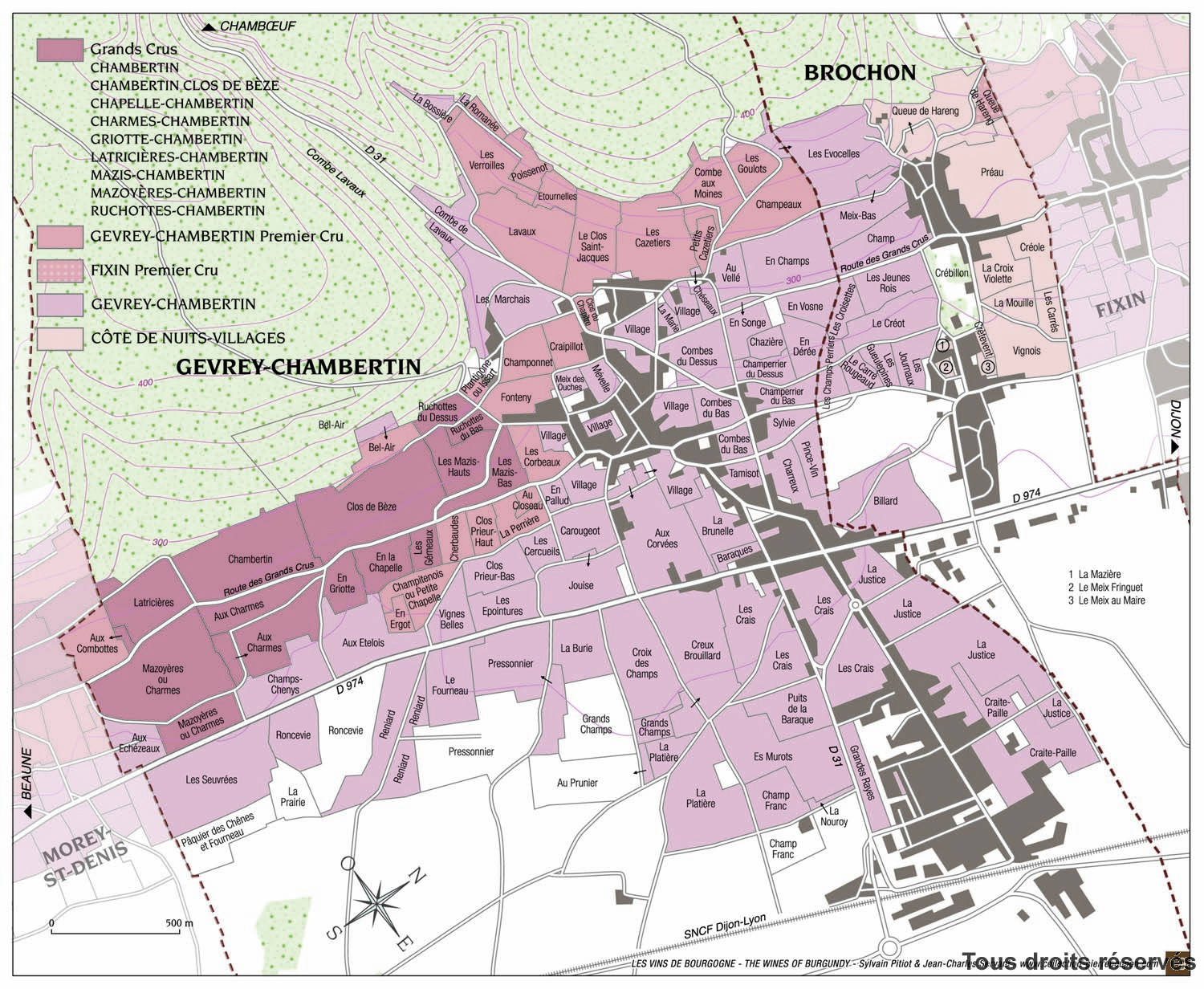 Mazoyères Chambertin est un Grand Cru atypique. Il est situé sur la commune de Gevrey Chambertin mais il est proche du village de Morey Saint Denis (400 m).